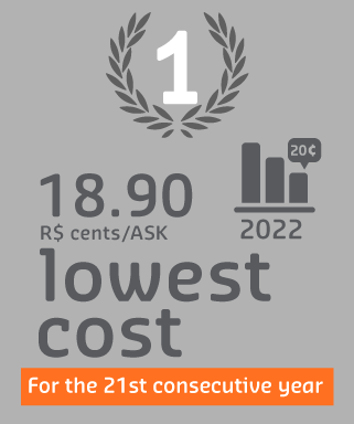 Lowest cost in the Brazilian domestic market